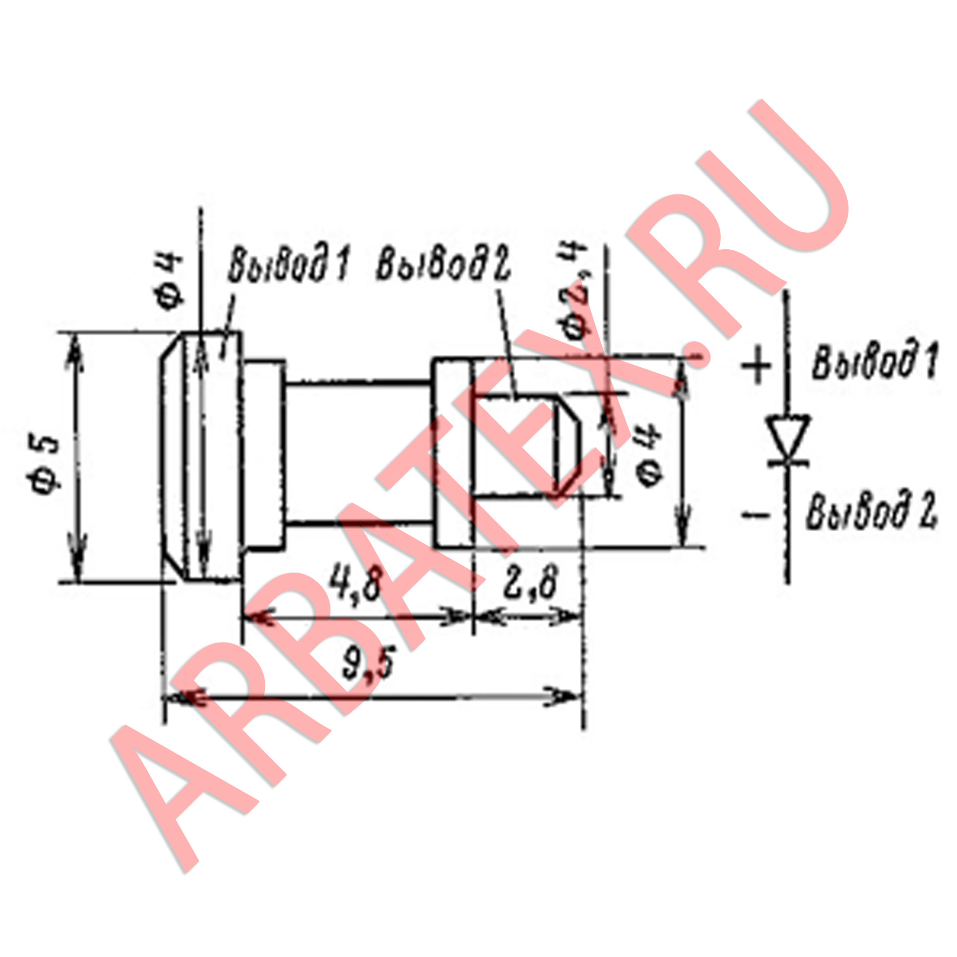 Тип диода и схема соединения электродов, с выводами приводятся на этикетке. Маркируются цветными точками у отрицательного вывода