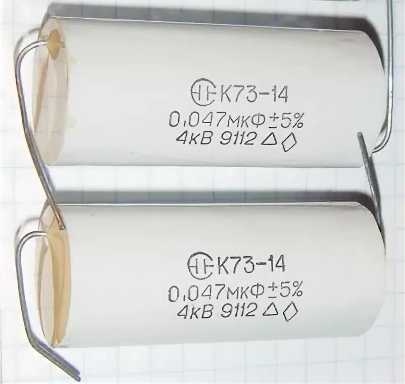 К73-14 4кВ 0,047мкф конденсатор постоянной ёмкости на основе металлизированной полиэтилентерефталатной плёнки. Предназначен для работы в цепях постоянного, переменного, пульсирующего токов и в импульсных режимах.