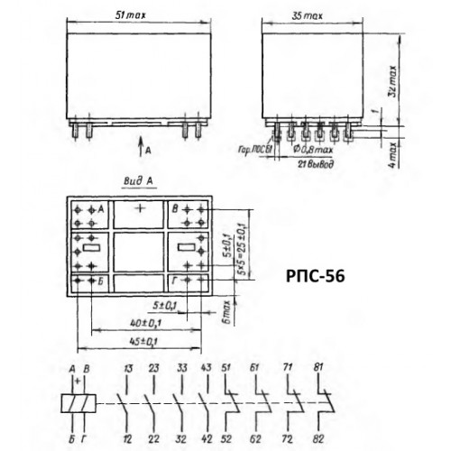 | РПС-56 РС4.569.907-02 | 4з + 4р | 10,1…13,9 | 95 ±9,5 | 8,5 | - | 9,5 | - | 0,25 | 10-6…0,35 | 0,001…60 |