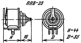 Резисторы ППБ-25Д переменные проволочные регулировочные для навесного монтажа.