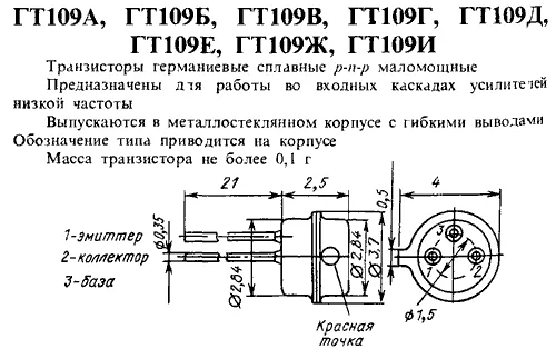 Транзисторы ГТ109Г - германиевые сплавные p-n-p маломощные.